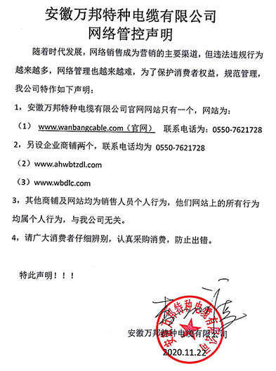 鄭重聲明:安徽萬邦特種電纜有限公司官方網站為:www_wanbangcable_com.xinfangwang888.com.cn,除此之外無任何子網站或合作網站,其余均為假冒偽劣。電話:0550-7621728 13485756353 地 址:安徽省天長市滁州高新技術產業開發區經四路29號